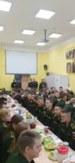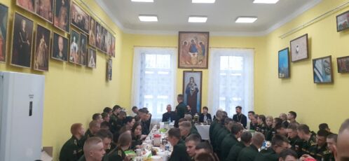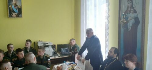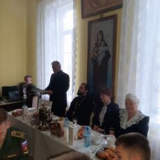 Встреча по традиции началась с праздничного чаепития. В этой дружеской, теплой атмосфере и велась беседа с курсантами – членами научного духовно-просветительского центра. Об истории праздника Покрова Пресвятой Богородицы рассказал заместитель начальника Военно-медицинской академии по военно-политической работе, заслуженный врач Российской Федерации, доктор медицинских наук, полковник медицинской службы Лютов Владимир Викторович.