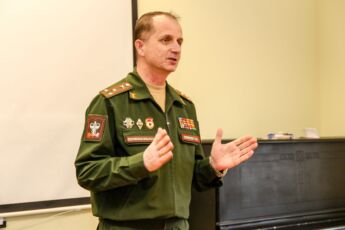 В этом году решил посетить секции на кафедре русского языка полковник Павел Петрович Олексюк, заместитель начальника Военно-медицинской академии по военно-политической работе. Павел Петрович высоко оценил достижения курсантов и труд научных руководителей, подбодрил курсантов, проводя параллели с другими языками и отмечая, что русский язык не такой трудный, как кажется на первый взгляд, а также пожелал удачи в освоении русского языка, на котором иностранные слушатели будут изучать медицину.