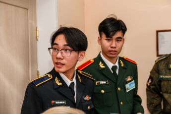На кафедре традиционно работают 2 секции: «Лингвокультурология» и «Национальные культуры в научном изложении». В секции «Лингвокультурология» (15 выступлений) прозвучали доклады как российских, так и иностранных курсантов об ономастике, фразеологии, терминологии. Курсанты исследовали разные части речи: и глаголы движения, и местоимения вежливости, и падежную систему своих языков в сопоставлении с русским языком. А курсанты Нгуен Минь Хиеу и Чан Дык Нгуен (1 курс, Вьетнам) рассказали, с какими трудностями сталкиваются вьетнамцы в изучении русского языка. Павел Петрович Олексюк посетил именно эту секцию и активно обсуждал с докладчиками их выступления.