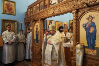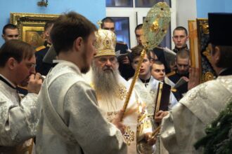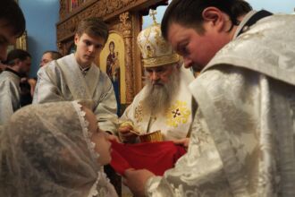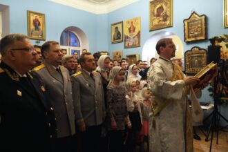 Торжественное Богослужение прошло 13 января 2019 года, в день отдания праздника Рождества Христова. В храм пришли офицеры, преподаватели, курсанты академии с семьями. Для тех, кто не смог попасть в главное помещение храма была организована телевизионная трансляция. Вместе со всеми на службе присутствовало и командование Военно-медицинской академии. Митрополит Санкт-Петербургский и Ладожский Варсонофий впервые посетил храм святых апостолов Петра и Павла при академии. В завершение Богослужения он обратился к присутствующим: «Сегодня мы молились с военными, будущими медиками, которым предстоит большой жизненный путь. Оказывать помощь людям — это самое высокое послушание перед Богом, потому что все люди страдают, болеют и с детства нуждаются во внимании врачей. Желаю обручающимся в Военно-медицинской академии стать хорошими специалистами и добрыми людьми. Народ любит врачей и всегда ждет от них утешения. Получив знания, вы принесете много пользы людям, станете достойными гражданами Отечества», — завершил проповедь митрополит Варсонофий. Александр Яковлевич Фисун поблагодарил митрополита и отметил, что они делают одно дело. «Врач должен быть всегда сердечным, честным, благожелательным, и этому также учит русская православная церковь»-сказал начальник академии, вручив гостю небольшие подарки.