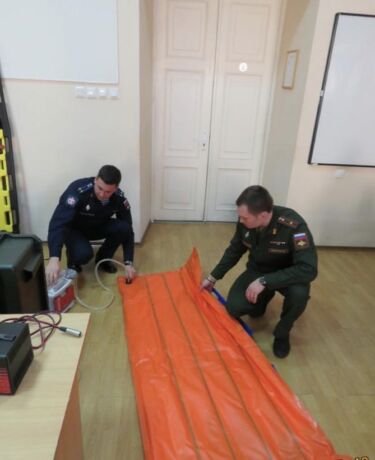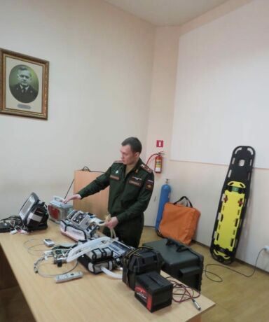 На занятии было продемонстрировано медицинское оборудование входящее в состав модуля. Также была отработана методика проверки его готовности к применению и размещение навесного оборудования на каркасе модуля. Подробно разобраны этапы загрузки модуля на борт самолета.
