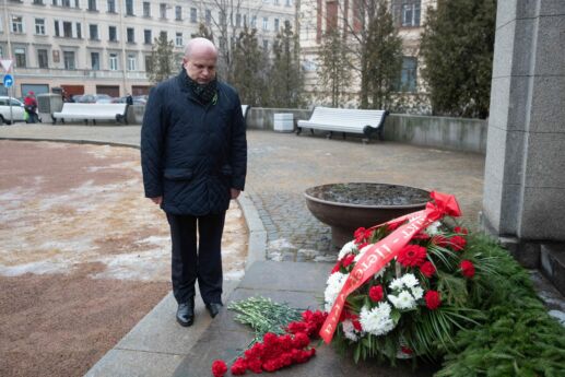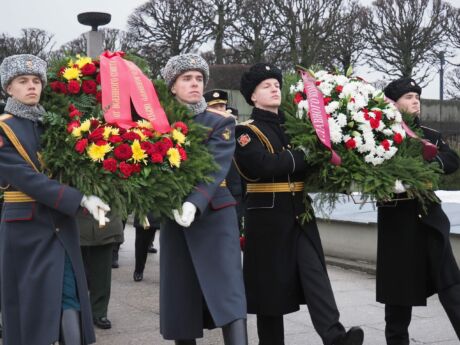 Начальник Военно-медицинской академии генерал-майор медицинской службы Евгений Крюков в составе делегации представителей федеральных и городских властей, общественных организаций, военных и силовых ведомств возложили венки и цветы к скульптуре «Мать-Родина» на Пискаревском кладбище в память о Ленинградцах, погибших во время блокады.