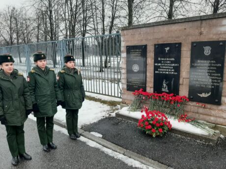 На аллее памяти Пискаревского мемориала курсанты факультета среднего профессионального образования возложили цветы к плите «Медикам блокадного Ленинграда».