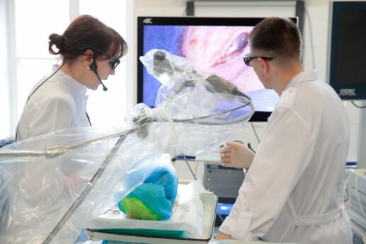 В этом году в качестве лекторов, модераторов и хирургов курса принимали участие лор-хирурги, офтальмологи, нейрохирурги и челюстно-лицевые хирурги. Одна из составляющих курса — интенсивная работа в операционных залах на рабочих местах, оснащённых эндоскопическими стойками, а также силовым и навигационным оборудованием. Впервые на курсе была использована 3D-визуализация. Благодаря этой технологии слушатели в зале могли видеть объемную картинку операции, которая транслировалась из учебной операционной. Сможет ли эта технология в будущем полностью заменить операционный микроскоп? Пока врачи говорят об этом осторожно, но отмечают, что в образовательном процессе 3D-технология уже зарекомендовала себя очень хорошо.