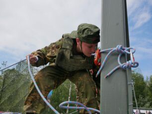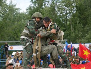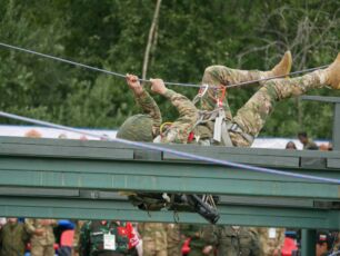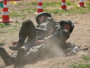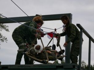 По условиям конкурса необходимо выполнить ряд тяжелейших упражнений: преодолеть полосу препятствий, оказать первую помощь условно раненому и оттащить его на переправу через водную преграду, извлечь условно раненого из бронетехники и отнести его на переправу. Веревочную переправу также оборудуют сами участники команды. После того, как «раненые» на носилках отправлены на другой берег, переправляются все члены команды и сворачивают переправу за собой. Конечная точка этапа – загрузка в санитарный транспорт.