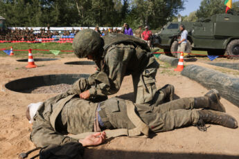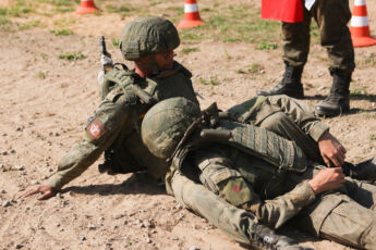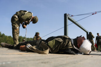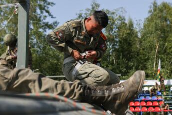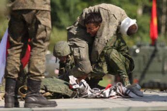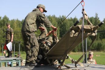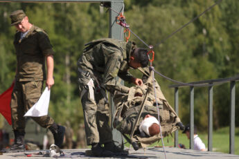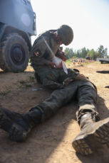 По условиям конкурса необходимо выполнить ряд тяжелейших упражнений: преодолеть полосу препятствий, оказать первую помощь условно раненому и оттащить его на переправу через водную преграду, извлечь условно раненого из бронетехники и отнести его на переправу. Веревочную переправу также оборудуют сами участники команды. После того, как «раненые» на носилках отправлены на другой берег, переправляются все члены команды и сворачивают переправу за собой. Конечная точка этапа – загрузка в санитарный транспорт.