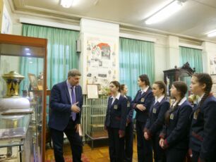 9 девочек из 8-10 класса приехали на экскурсию в историко-мемориальный зал академии