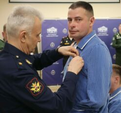 В реабилитационно-образовательном центре, действующем на базе «Военно-медицинской академии им. С. М. Кирова» начальник Управления военного образования – заместитель начальника Главного управления кадров Минобороны России генерал-майор Игорь Муравлянников вручил военнослужащим-участникам специальной военной операции государственные и ведомственные награды, сертификаты об окончании курса дополнительного профобразования и воинские звания. Отличившимся военнослужащим вручено 37 наград, в числе которых 9 орденов «Мужества», Знак отличия ордена Святого Георгия — Георгиевский Крест IV степени, медаль «Суворова» и 10 медалей «За отвагу», медаль «За храбрость» II степени и 15 медалей «Участник СВО»»,