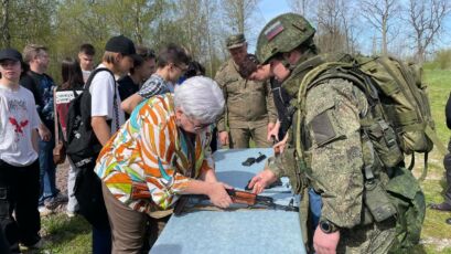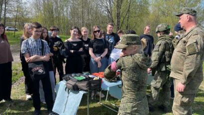 В этот раз ученики подшефной школы во главе с директором Елизаветой Тужиковой принимали военных медиков не у себя, а сами приехали в гости . На полигоне в Красном Селе делегацию встретили начальник центра тактической медицины подполковник медицинской службы Александр Завирский и ответственный секретарь приемной комиссии подполковник медицинской службы Евгений Воеводин. За несколько часов насыщенной программы ребята познакомились с элементами общевойсковой подготовки и современными методами оказания помощи, научились простейшим приемам тактической медицины — остановке кровотечения, наложению жгута и турникета, увидели новейшие армейские аптечки и снаряжение, а урок по сборке\разборке автомата не оставил равнодушной даже директора школы: Елизавета Тужикова азартно приняла участие в тренировке упражнения и показала один из лучших результатов! Безусловно, такое практическое занятие привело подростков в восторг, и они буквально засыпали вопросами о правилах поступления в Военно-медицинскую академию Евгения Воеводина, который с удовольствием обстоятельно ответил на каждый из них.