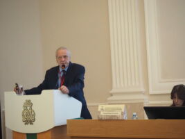 С докладом «Боевая психическая травма и патология: клинико-организационные аспекты» на пленарном заседании выступил заведующий кафедрой психиатрии ВМедА, доктор медицинских наук главный психиатр МО РФ Владислав Шамрей.