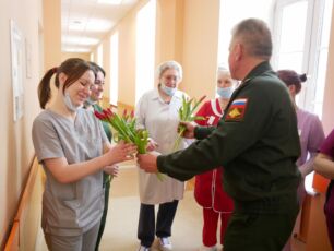 Депутат Государственной Думы, первый заместитель председателя Комитета Госдумы по контролю, член фракции «Единая Россия» Михаил Романов поздравил медицинских сестер клиники военно-полевой хирургии с 8 марта