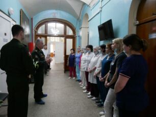 Благодарности Государственной Думы медицинским сестрам клиники ВПХ Военно-медицинской академии вручил депутат Михаил Романов