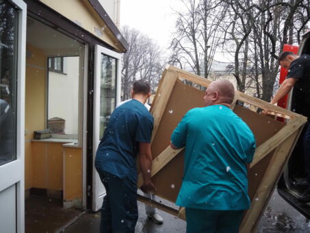 20 ноября в клинику общей хирургии Военно-медицинской академии были переданы специальные коляски-ступенькоходы. В их конструкции имеются специальные выдвижные опоры, которые приводятся в рабочее положение при необходимости переехать через различные препятствия. Ведь пациентам с нарушениями опорно-двигательного аппарата сложно преодолеть лестницы, пороги и бордюры. Такая техника всегда необходима в клиниках академии, так как раненые после лечения отправляются на реабилитацию вместе с колясками. Представитель фонда Владимир Петрулевич также вручил билеты на благотворительный вечер в Эрмитажный театр для медицинских работников, оказывающих помощь в лечении и реабилитации раненых.