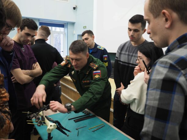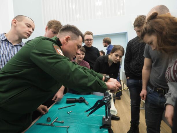 Курсанты академии и студенты медицинских вузов Северо-Запада должны были познакомиться с общими вопросами внешней фиксации стержневыми аппаратами и назначением аппарата КСВП, а также отработать мануальные навыки применения аппарата КСВП на моделях пластиковых костей в различных анатомических областях.