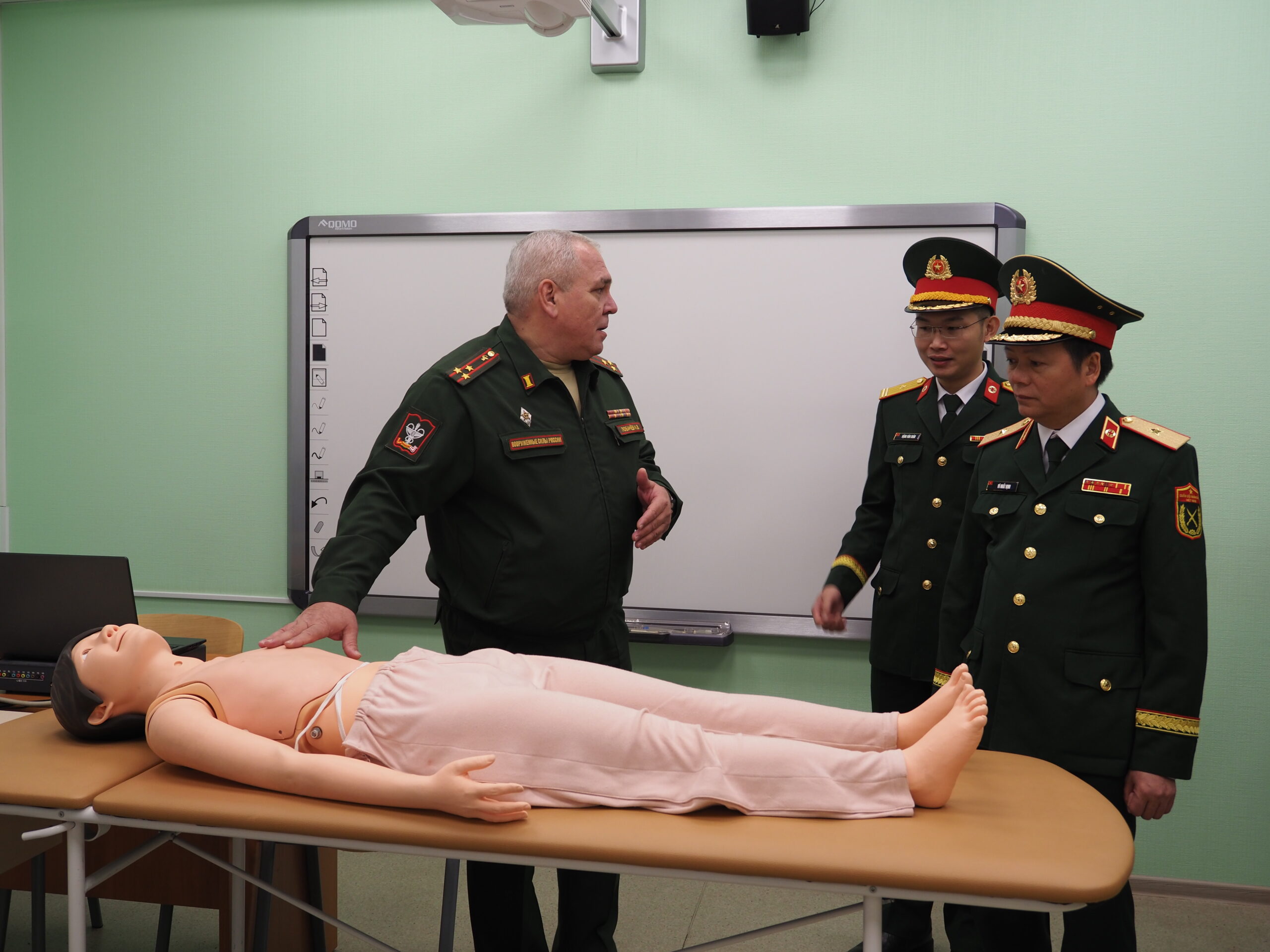 Вьетнамская делегация посетила и современный симуляционный центр, где курсанты и студенты отрабатывают практические навыки, побывала в фундаментальной библиотеке, посмотрела музей кафедры нормальной анатомии и кафедры оперативной хирургии (с топографической анатомией) и встретилась с курсантами из Вьетнама, которые проходят у нас обучение.