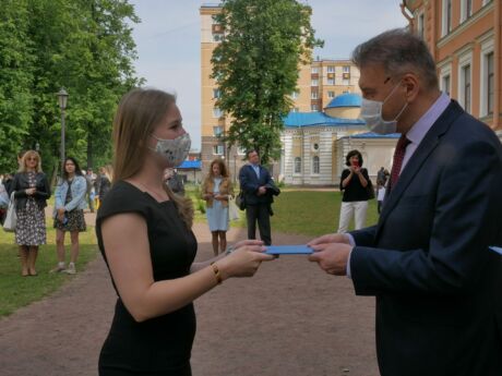 30 июня 2020 года в академии состоялся выпуск гражданских врачей. В ряды врачебного товарищества вступают 136 врачей лечебников, 53 врача стоматолога и 15 провизоров. Необходимо отметить, что этом году состоялся первый выпуск стоматологов и провизоров факультета. По итогам работы Государственной аттестационной комиссии диплом с отличием получили 17 выпускников. Выпускнице Рашидовой Севаре Рашидовне был вручен Памятный знак Военно-медицинской академии. Она окончила обучение без единой четверки. Торжественное мероприятие, посвященное выпуску, проходило в историческом месте – на территории анатомического корпуса. В связи с санитарно-эпидемиологической обстановкой по нераспространению коронавирусной инфекции было решено провести торжественное мероприятие со всеми предосторожностями. С теплыми словами приветствия от лица командования академии к выпускникам обратился декан факультета доктор медицинских наук профессор Попов Вячеслав Игоревич. В торжественной обстановке выпускникам были вручены дипломы врачей, провизоров и принята «Клятва Врача России». Академия всегда останется для выпускников факультета открытым родным домом! В добрый путь!