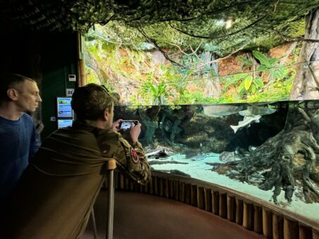 Военнослужащие посмотрели на кормление обитателей океанариума, показательные тренировки тюленей и акул. Узнали больше об обитателях умеренных и тропических широт. А также подробно изучили рыб и млекопитающих Северо-запада России.