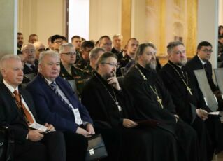 Однако самой важной для многих приглашенных стала именно торжественная часть открытия конференции, на которой чествовали юбиляров. Со всех уголков страны слетелись в Санкт-Петербург выпускники факультета подготовки врачей для Военно-морского флота! Приглашенных приветствовал заместитель начальника Военно-медицинской академии полковник медицинской службы Евгений Ивченко – сам выпускник 4 факультета. Регламент мероприятия не позволил выступить всем, кто хотел поздравить юбиляров, но начальник 4 факультета подполковник медицинской службы Антон Фисун, начальник кафедры и клиники военно-морской хирургии полковник медицинской службы Дмитрий Суров и начальник кафедры организации тактики медицинской службы флота полковник медицинской службы Олег Черников услышали в свой адрес много теплых слов и поздравлений от представителя командования ВМФ, от представителей духовенства, от военных и уже гражданских своих выпускников, многие из которых возглавляют крупные медицинские организации в разных частях страны.