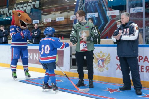 23 февраля на ледовой арене СКА «Хоккейный город» прошли праздничные мероприятия, посвященные Дню защитника Отечества. Организаторами выступили хоккейный клуб СКА совместно с Федерацией хоккея Ленинградской области и Хоккейной лигой военнослужащих.