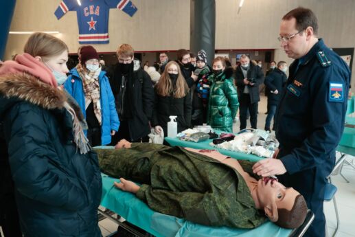 В фойе комплекса для всех желающих работал пункт записи на военную службу по контракту. Для родителей и их детей специалисты академии провели познавательные медицинские мастер-классы на манекенах по отработке профессиональных навыков, а также рассказали, как поступить в Военно-медицинскую академию.