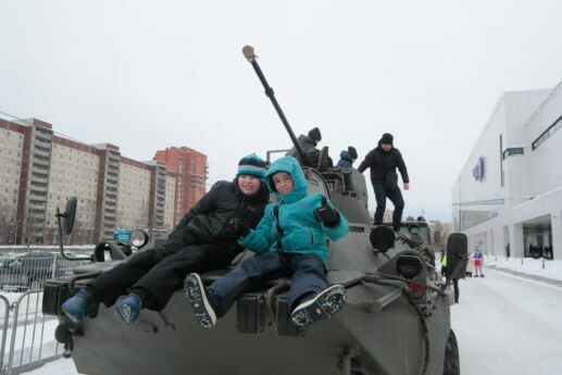 и на открытой территории комплекса, где по традиции прошла выставка военной техники Западного военного округа и ретро автомобилей, а также была развернута пневмокаркасная палатка, предоставленная производственным объединением ООО «Триумф», в которой оказывали консультационную помощь врачи-специалисты по направлениям офтальмология, неврология, терапия, инфекционные болезни, оториноларингология. Осмотр и консультации получили более 150 жителей Санкт-Петербурга.