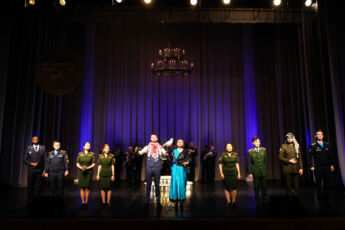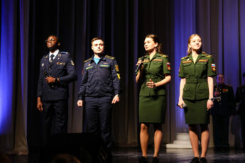 В этом году наш коллектив выступил с литературно-музыкальной композицией на стихи восточных поэтов «Благослови мою Отчизну, Небо!», – автором и вдохновителем которой стала преподаватель кафедры русского языка академии Ксения Коваль. Филигранно дополняет маленький спектакль участие оркестра академии под управлением военного дирижера подполковника Михаила Николаева – «живая» музыка выгодно отличает финальный аккорд всей программы. В композиции принимали участие курсанты разных стран, разных городов России, разных факультетов и курсов: уже 6 лет преданы проекту выпускники 5 факультета Ундралмаа Батжаргал (Монголия) и Виктор Мемо (Ангола), с первого курса влились в команду курсанты 4 курса 3 факультета из России Игорь Панкратов и Евгений Фомичев. Шестикурсник Нгуен Чонг Хай (5 факультет, Вьетнам) и четверокурсница Полина Павленко (4 факультет, Россия) пришли в проект в 2023 году, а учащиеся Салим Нижм (Палестина, 5 факультет 5 курс) и Мария Патынко (Россия, 4 факультет 4 курс) занимаются восточной поэзией 2 года. В этом году стали дебютантами коллектива победители академических конкурсов чтецов Семен Сильченко (Беларусь, 5 факультет 5 курс) и Анастасия Пономарева (Россия, 8 факультет 2 курс).
