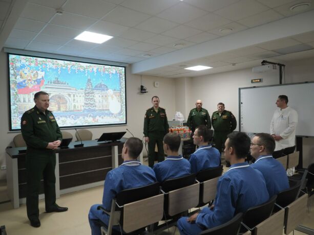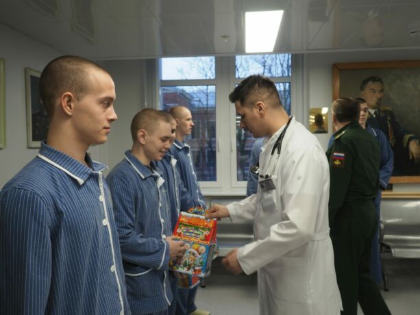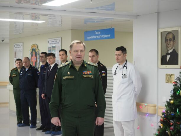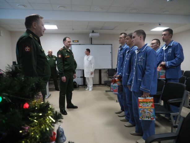 В теплой предпраздничной обстановке генерал-майор медицинской службы Бунин С.А. пожелал военнослужащим по призыву, находящимся на лечении в клиниках, скорейшего выздоровления, возвращения в строй и успешного окончания воинской службы в новом году, а также, вручил новогодние подарки.