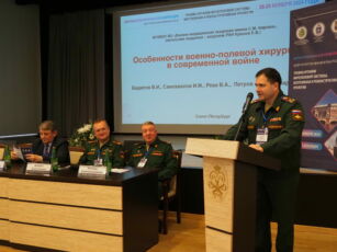 С приветственным словом к гостям мероприятия обратился заместитель начальника академии-начальник лечебно-диагностического центра академии полковник медицинской службы Виталий Маркевич. Он пожелал участникам удачных выступлений и отметил, что в нынешней ситуации тема боевой травмы органов мочеполовой системы как никогда актуальна. Виталий Маркевич также рассказал, что клиника урологии была создана в годы Великой Отечественной войны и необходимость создания подразделения для подготовки военных урологов была продиктована реалиями того времени. «Сейчас клиника урологии, благодаря высокому научно-педагогическому потенциалу кафедры и высокотехнологичному оборудованию продолжает спасать жизни многих раненых бойцов-участников специальной военной операции», — отметил заместитель начальника академии.
