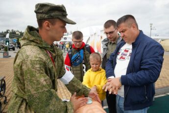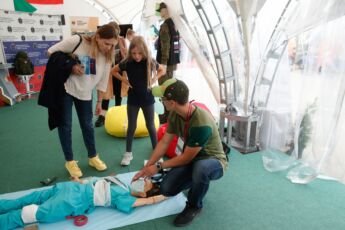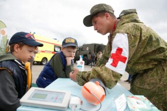 В палатке «Военно-медицинской эстафеты» – баннеры с информацией о конкурсе, тренажеры для обучения остановке кровотечения и наложения повязок и жгутов. Также в палатке можно пройти комплексное обследование организма.