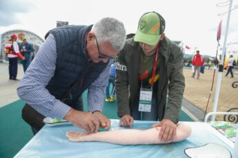 Для этого у них есть все необходимое: тренажёр отработки навыков внутривенных инъекций, измерения артериального давления, проведения базовой сердечно-легочной реанимации. Также курсанты демонстрируют гостям содержимое сумки войскового врача и рассказывают, как хранить необходимые медикаменты, как правильно их перевозить.