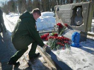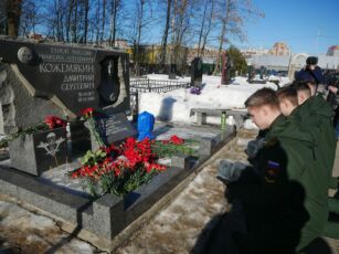 В ходе памятного мероприятия курсанты 1 курса 2 факультета Военно-медицинской академии возложили цветы к могиле Героя РФ, гвардии лейтенанта Дмитрия Кожемякина.