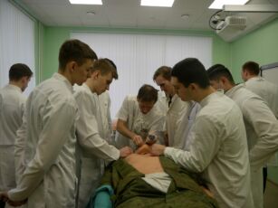 Курсанты факультетов подготовки врачей выпускных курсов прошли дополнительное обучение на курсе СМАРТ («Современные методы и алгоритмы лечения ранений и травм») по вопросам обследования и оказания помощи раненым и пострадавшим.
