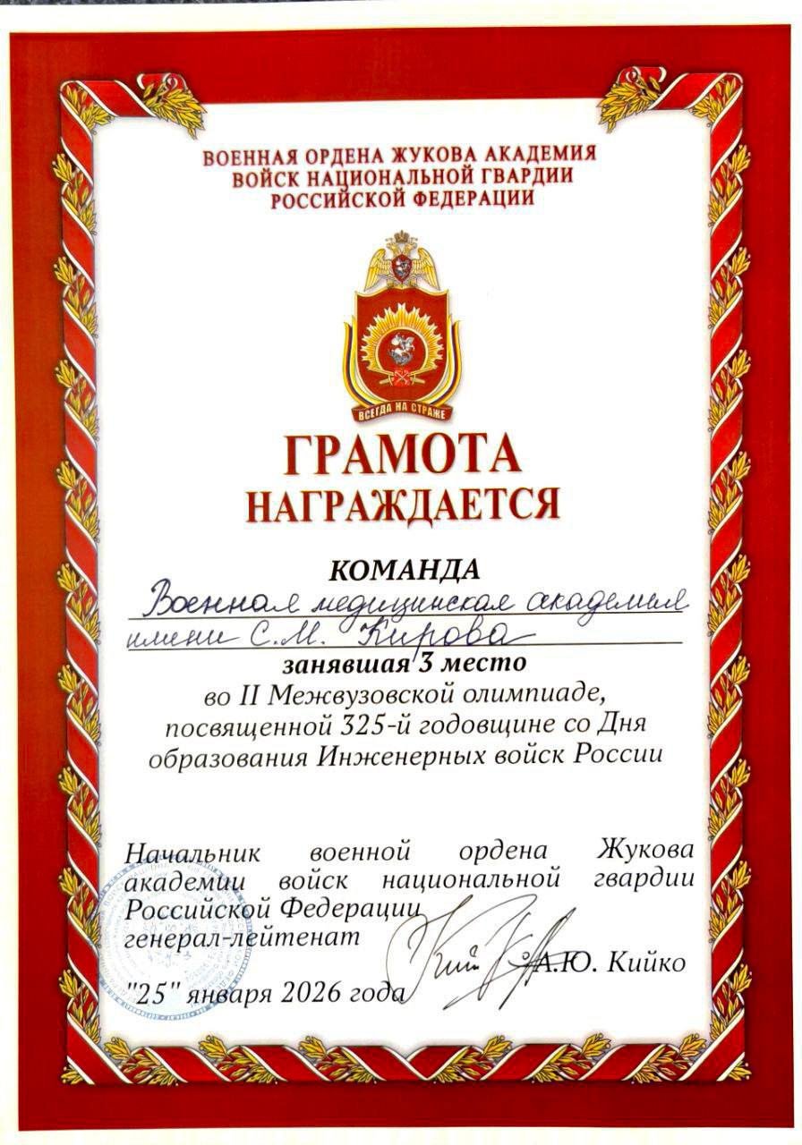 По итогам олимпиады курсанты 2 курса заняли 3 место. В состав команды вошли курсанты Вильдяева Д., Нелюбина А., Романова А., Рузова М.