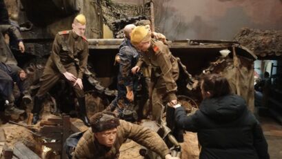 В пятом павильоне Ленфильма открыта выставка «Пропавшие в кинохронике». Это самая масштабная трехмерная панорама о войне в России – на территории 1,5 км тщательно воссозданы разные локации, рассказывающие о событиях Великой Отечественной войны. Создали уникальное пространство молодые люди из патриотического движения «Невский баталист», которые до этого придумали и воплотили в жизнь «Поезд Победы» — уникальный передвижной музей.