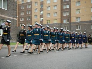 По завершении мероприятия, выпускники академии прошли торжественным маршем под аккомпанемент военного оркестра академии, который исполнил марш «Прощание славянки».
