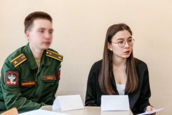 Следуя предложенной Наталией Анатольевной шуточной формуле «запомним правило трёх «Р» в стихах: ритм, рифма и размер», участники встречи курсант 2 факультета Арсений Аюпов и студентки 7 факультета Мария Рясная, Хадижа Эмирбекова и Анастасия Салимова подробнее познакомились именно с этими «тремя китами», важными при стихосложении, а именно: с видами и особенностями рифм в русском языке, со звуковой организацией стихов – размерами, с важностью соблюдения ритма, который как раз и определяет сам литературный жанр произведения (стихи могут быть без рифмы (белый стих), но без ритма стихов не бывает). Поговорили о возможных причинах ритмического сбоя.