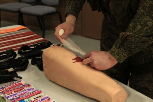 Участники и гости турнира смогли самостоятельно попробовать выполнить элементы расширенной первой помощи, в том числе технику тугой тампонады раны с применением специальной гемостатической Z-образной укладки.
