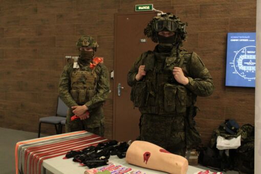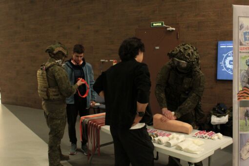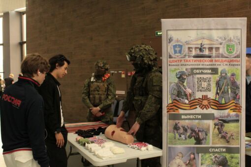 На выставке были представлены современные средства первой помощи, где ребята от нашей Академии продемонстрировали, как правильно оказывать помощь раненому на поле боя в «красной зоне».