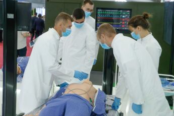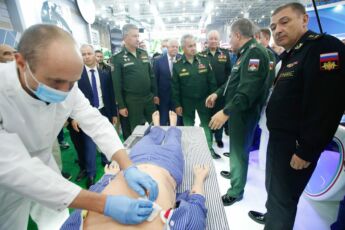 Слушатели филиала продемонстрировали многофункциональный высокотехнологичный робот-тренажёр, который используется в учебном процессе в симуляционных центрах академии в Санкт-Петербурге и Москве. На одном из манекенов Министру обороны продемонстрировали ликвидацию напряжённого пневмоторакса.
