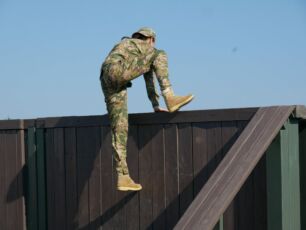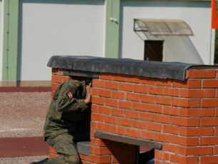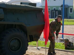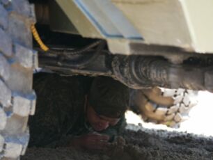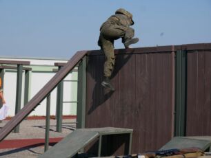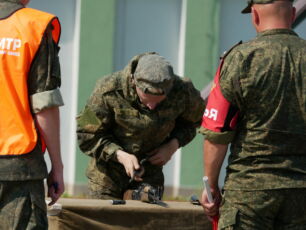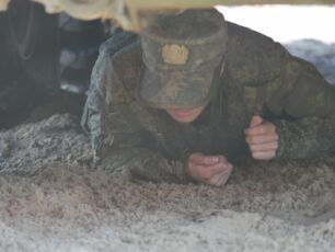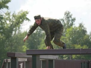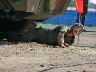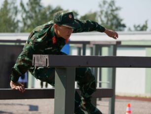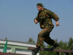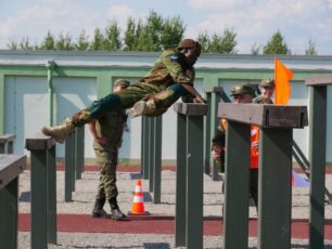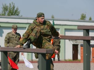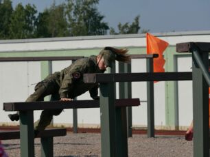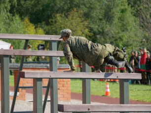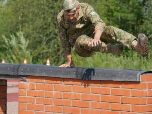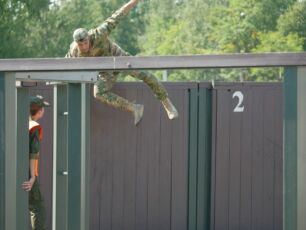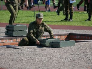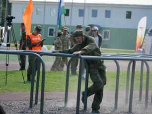 На полосе препятствий общей протяженностью 400 метров надо было выполнить метание гранаты, преодолеть лабиринт, разрушенную лестницу, разрушенный мост, стену с проломами, а также проползти под днищем бронетехники и собрать автомат на время.