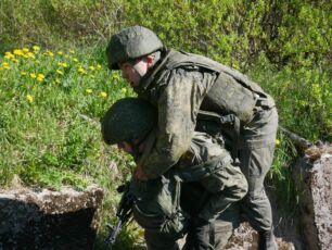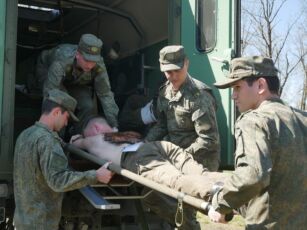 действия военнослужащих при нападении на воинскую колонну: извлечение раненых из бронетехники, оказание первой помощи (с элементами тактической медицины) и эвакуация пострадавших санитарным транспортом БММ Симфония, БММ Линза.