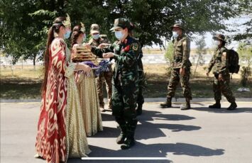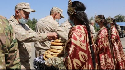 На горном полигоне Фориш в Республике Узбекистан, куда прибыла российская команда по военно-медицинскому многоборью «Военно-медицинская эстафета», прошла церемония встречи стран-участниц международных соревнований.