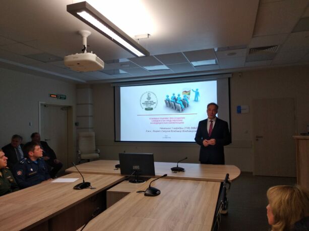 В рамках заседаний с лекцией «Основные ошибки при создании презентаций и их представлении на медицинских конференциях» выступил начальник 1 кафедры ТУВ Военно-медицинской академии доктор медицинских наук доцент Салухов Владимир Владимирович.