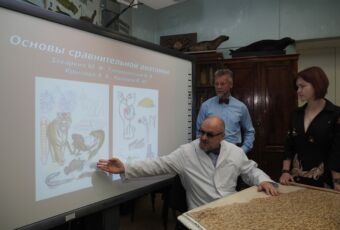 Презентацию учебника «Основы сравнительной анатомии» провела самый молодой соавтор книги студентка 2-го курса 7-го факультета Александра Крылова. Уникальность издания ещё в том, что иллюстрации к учебнику представлены оцифрованными препаратами, которые были изготовлены в 19-20 веках для учебного процесса, а сейчас находятся в музейной экспозиции кафедры биологии. Предметную фотосьемку осуществили студенты 7 факультета академии Милена Сулоева и Максим Кудрявцев, а оформление обложки и техническое редактирование выполнили Елизавета Евдощенко и Мария Герман. Кафедра биологии выражает огромную благодарность ребятам за этот труд.