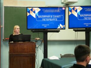 -«Проблемы диагностики и терапии малярии в неэндемичных регионах» (докладчик-А.Шабалина). Это было связано с актуальностью темы, ведь малярия является одним из наиболее актуальных инфекционных заболеваний, представляющих серьезную угрозу здоровью и жизни пациентов во всем мире, в том числе и в Российской Федерации.