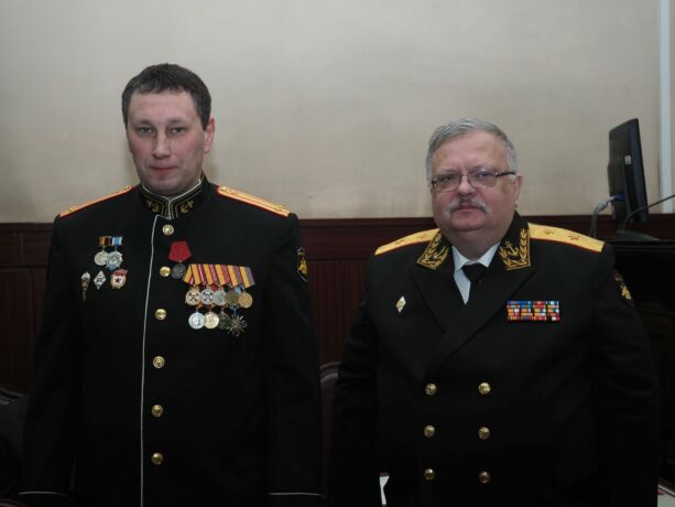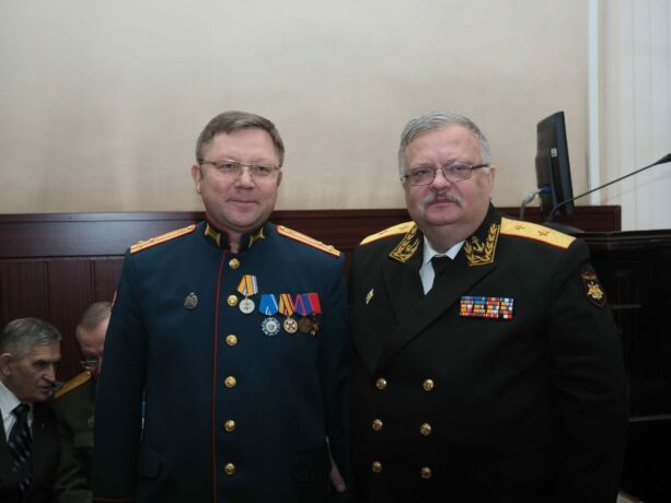 Начальник учебно-методического отдела полковник медицинской службы ЛОБАЧЕВ Иван Васильевич и заместитель начальника кафедры (нефрологии и эфферентной терапии) подполковник медицинской службы ЗАХАРОВ Михаил Владимирович.
