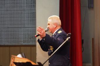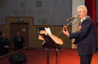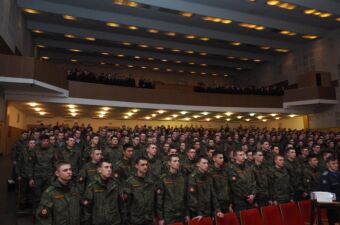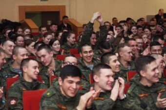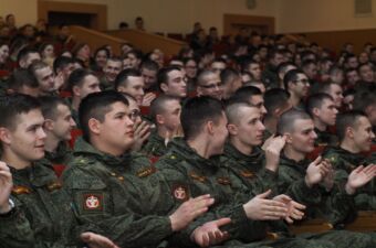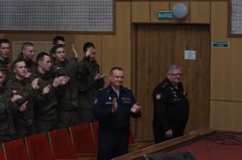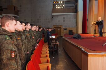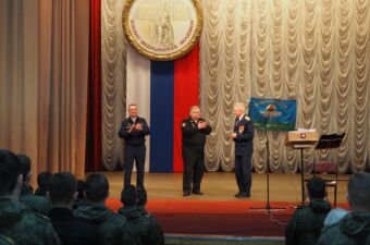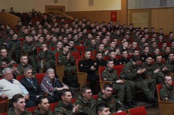 Перед собравшимися в зале зрителями, в числе которых были сотрудники академии, пережившие блокаду, выступил автор-исполнитель Михаил Калинкин. Полковник запаса Михаил Михайлович Калинкин главной темой своего творчества считает Великую Отечественную войну, войну в Афганистане и боевые действия в различных горячих точках на постсоветском пространстве. И почти в каждой его песне звучит тема офицерской чести. Есть у поэта-песенника и несколько эмоциональных композиций о Ленинградской блокаде. В числе зрителей в зале находился и начальник академии Александр Яковлевич Фисун, который, поблагодарив певца отметил, что такие выступления и встречи с курсантами очень важны, так как в песнях, написанных душой, есть правильное, нешаблонное понимание патриотизма, а общение артиста с залом находит живой отклик в сердцах зрителей.
