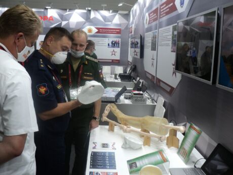 В рамках Международного военно-технического форума «Армия-2020» Главным управлением научно-исследовательской деятельности Министерства обороны был подготовлен стенд научных рот, на котором свои разработки представили операторы научной роты Военно-медицинской академии, а также операторы научной роты ВИТ «Эра», научное руководство которой осуществляют специалисты академии. За время проведения выставки с 23 августа 2020 года экспозицию посетило множество участников и гостей Форума. Начальник Главного военно-медицинского управления Дмитрий Тришкин высоко оценил разработки операторов. Кроме того с работой операторов ознакомились начальник 3 управления – заместитель начальника Главного военно-медицинского управления генерал-майор медицинской службы Олег Калачёв и председатель Военно-научного комитета – заместитель начальника Генерального штаба Вооруженных Сил России генерал-лейтенант Василий Трушин. Разработки высоким гостям представил командир научной роты, капитан медицинской службы Вадим Емельянов. Руководством ГВМУ был особенно отмечен «Антропоморфный стент нижней конечности», созданный под руководством Научно-исследовательского отдела экспериментальной медицины. Эта разработка поможет оценить свойства защитной обуви сапера.
