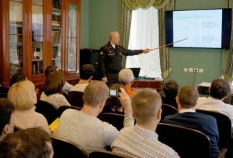 С приветствием к слушателям курса обратился заведующий кафедрой оперативной хирургии Военно-медицинской академии профессорФОМИН Николай Фёдорович. Первый день был посвящён отработке навыков ультразвуковой навигации при лечении спастичности инъекциями инкоботулотоксина (ботулинический токсин типа А, Ксеомин), разбору паттернов спастичности, алгоритмов подхода к диагностике и лечению пациентов с центральным парезом. В рамках программы доцентом кафедры неврологии Мисиковым Виктором Казбековичем были представлены методы мануального тестирования спастичных мышц, доцентом А.П. Коваленко были разобраны особенности диагностики спастичности с использованием экспертных шкал. Практическая часть включала в себя индивидуальную работу с каждым слушателем по отработке им навыка использования ультразвукового аппарата и создания запоминающегося визуального образа мышц нижней конечности, отображённых на экране монитора. В завершении первого дня работы был проведён клинический разбор пациента, перенёсшего острое нарушение мозгового кровообращения с развитием гемипареза и спастичности в ноге и проведена инъекция инкоботулотоксина (Ксеомин) в спастичные мышцы нижней конечности.