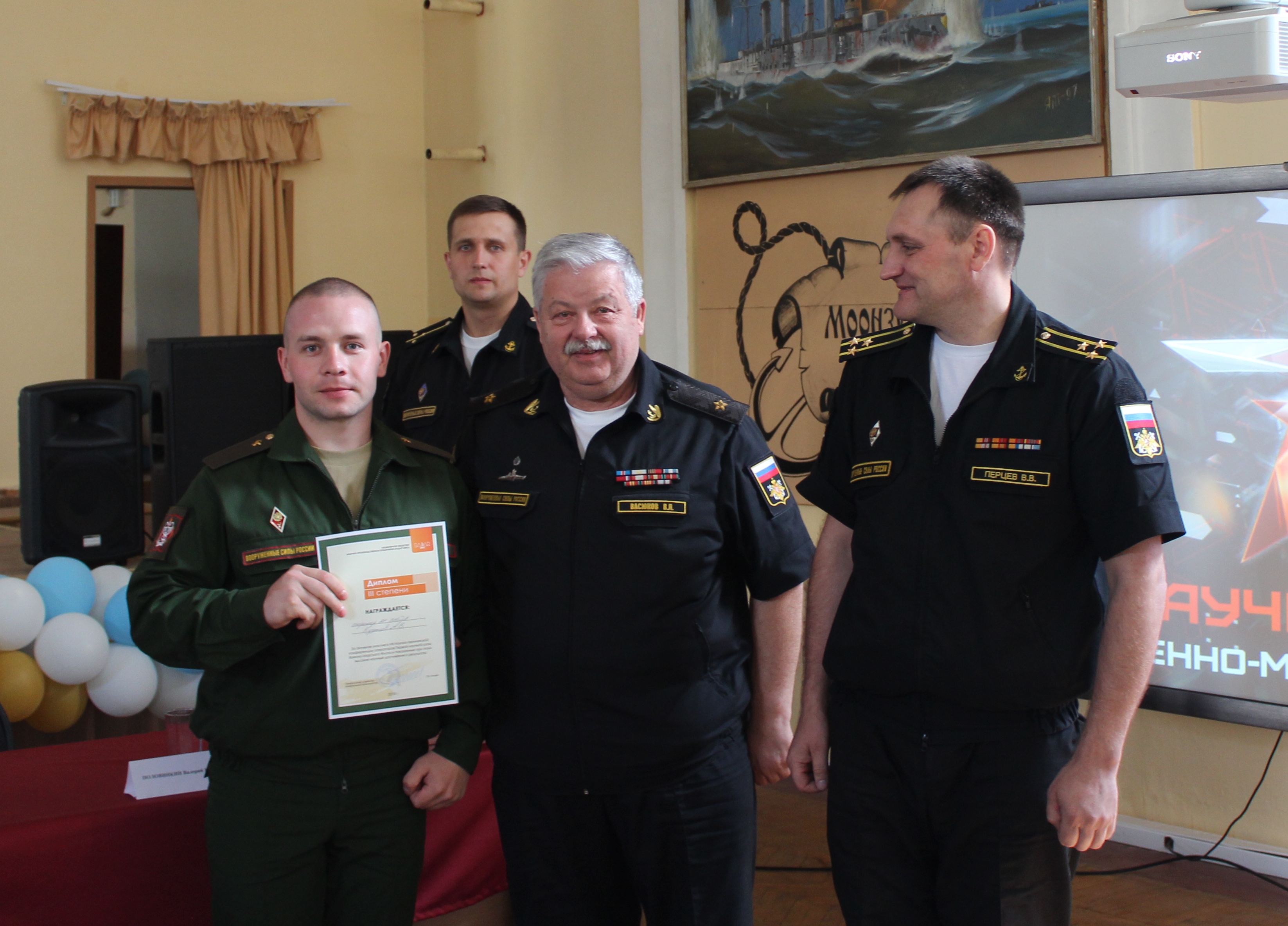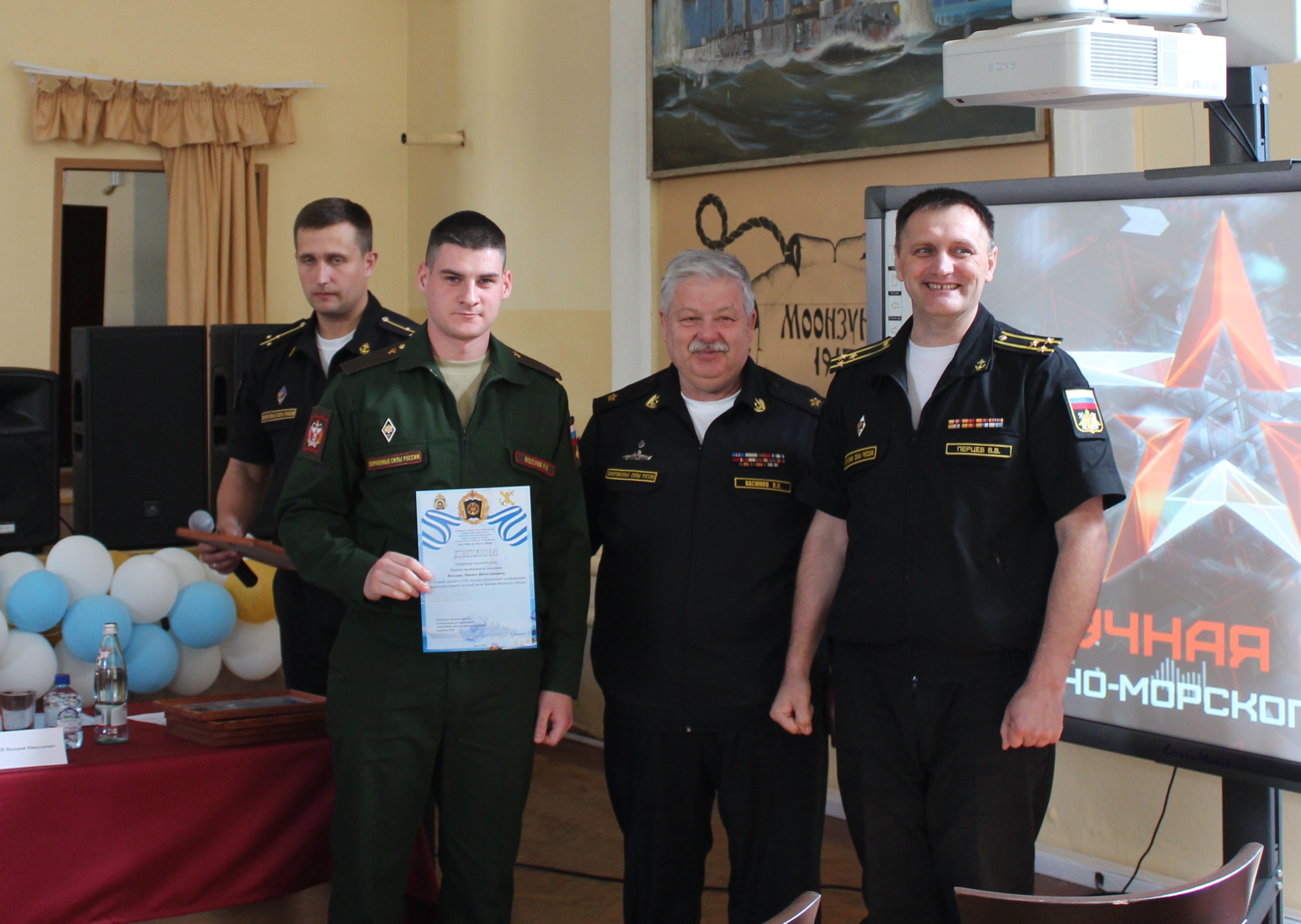 С приветственным словом к участникам конференции выступил советник президента АО «Объединенная судостроительная корпорация» адмирал Чирков Виктор Викторович. Он подчеркнул важность проведения подобных встреч молодых ученых, а также поздравил командование первой научной роты Военно-морского флота с пятилетием со дня ее основания.